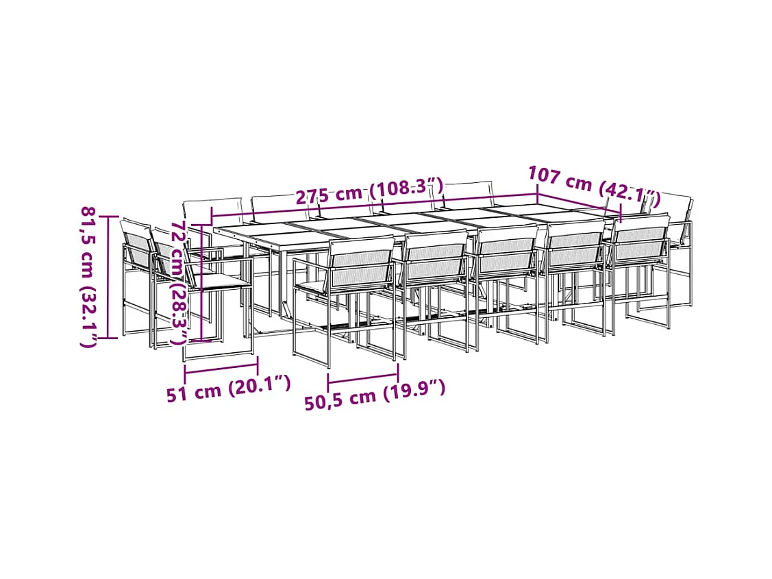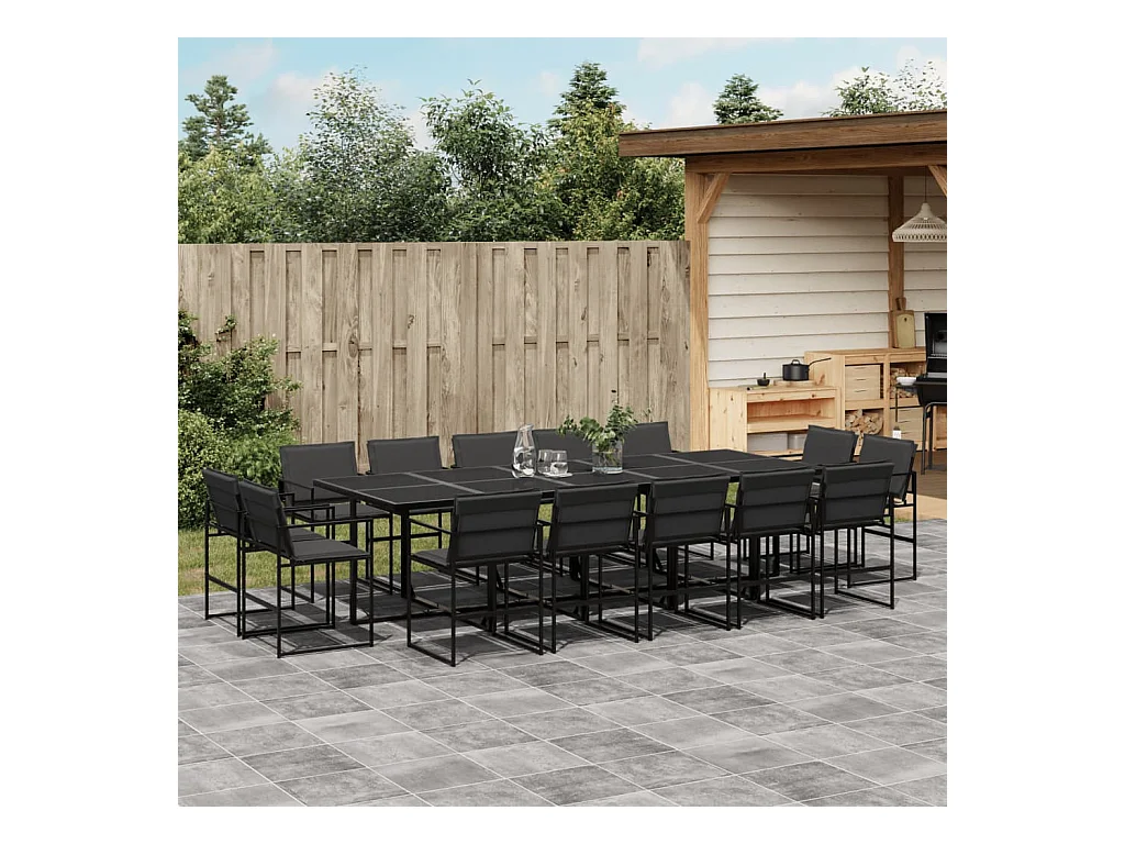 Juego de comedor de jardín 17 piezas con cojines textileno negro
