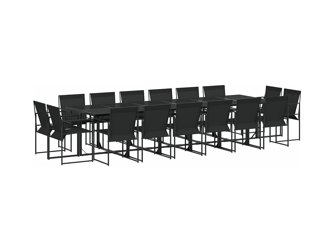 Juego de comedor de jardín 17 pzas con cojines textileno negro