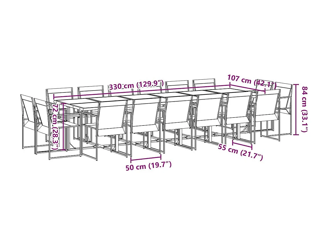 Conjunto de mesa y sillas para jardín rectangular de metal