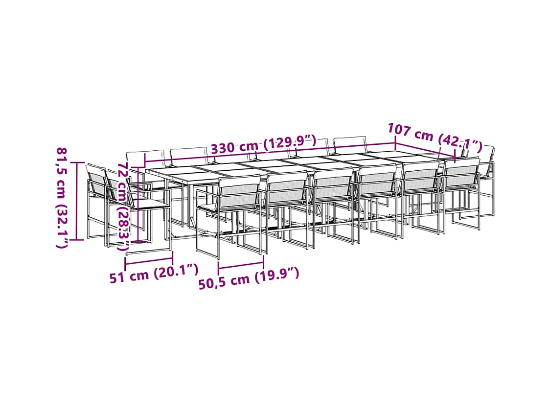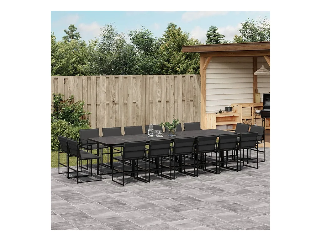 Juego de comedor de jardín 17 pzas con cojines textileno negro