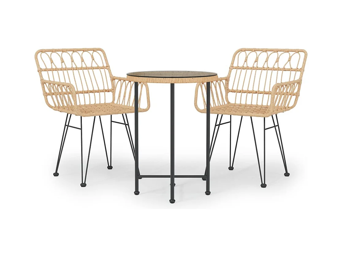 Juego de comedor de jardín 3 piezas con cojines marrón
