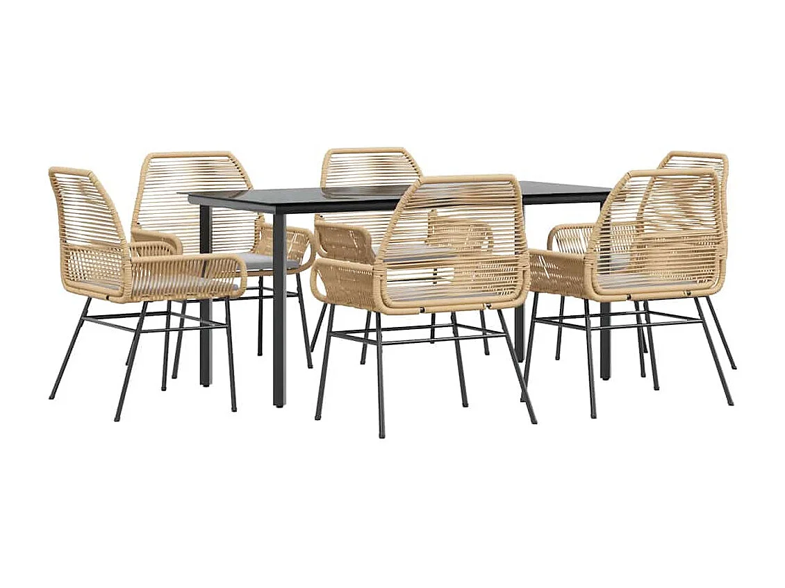 Juego de comedor de jardín 7 piezas con cojines ratán PE marrón