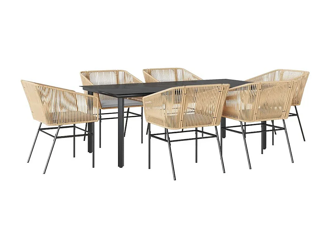 Juego de comedor de jardín 7 piezas con cojines ratán PE marrón