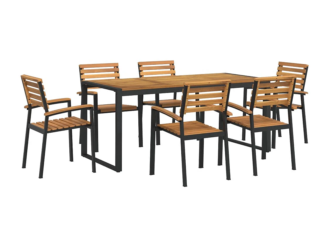 Juego de comedor de jardín 7 piezas madera maciza acacia y metal