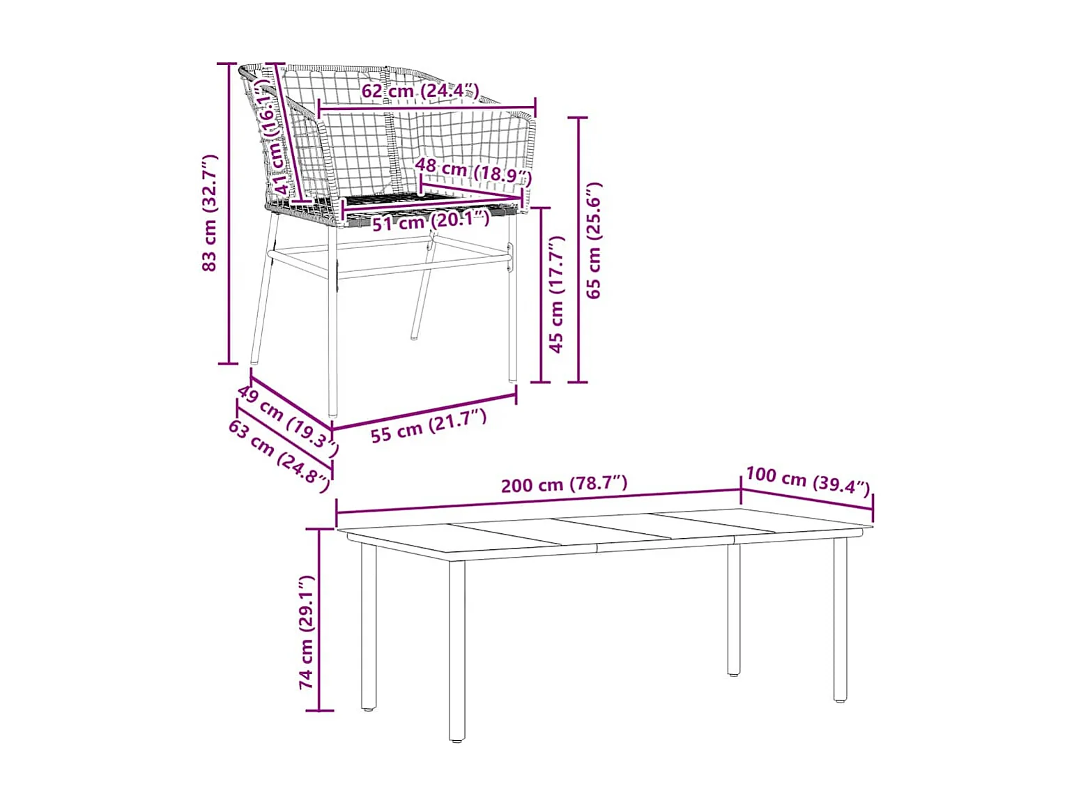 Juego de comedor de jardín 7 piezas ratán PE marrón