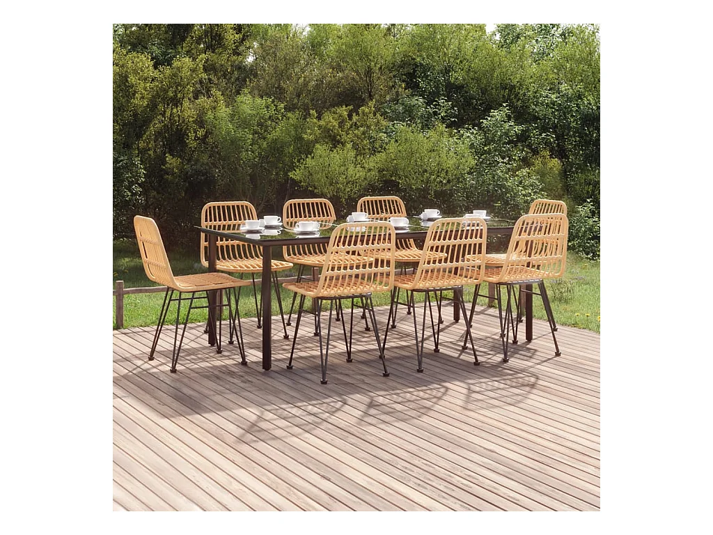 Juego de comedor de jardín 9 piezas ratán sintético