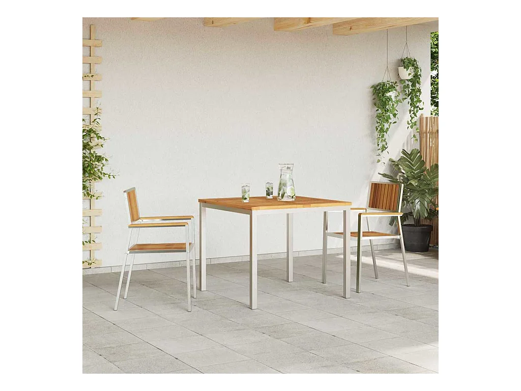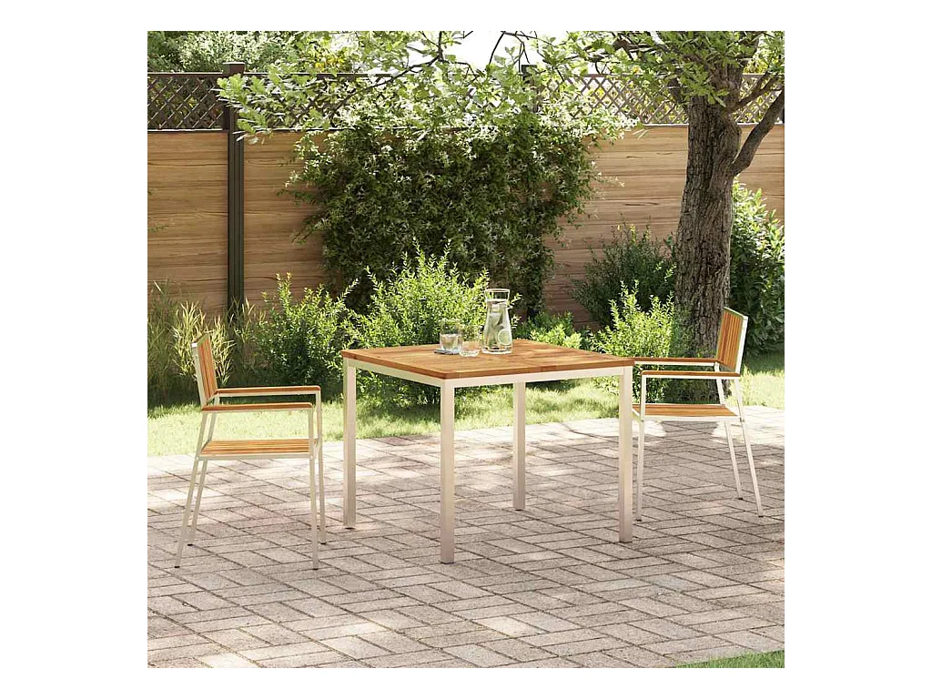 Mesa de comedor para exterior de madera maciza de acacia marrón