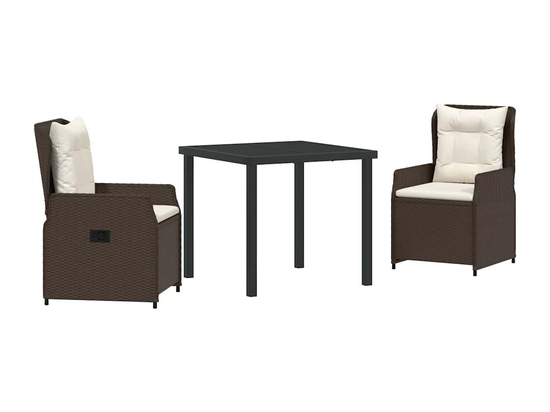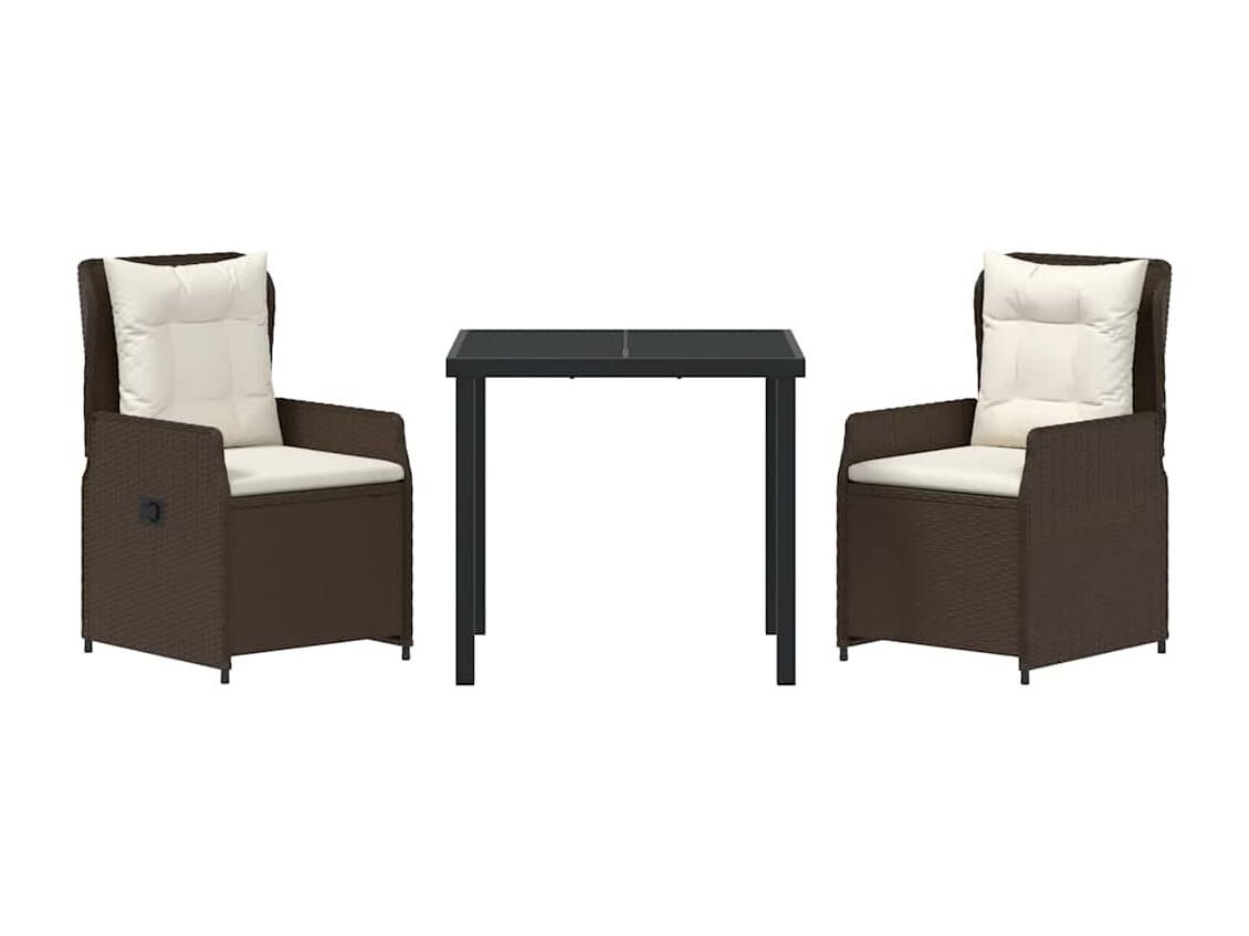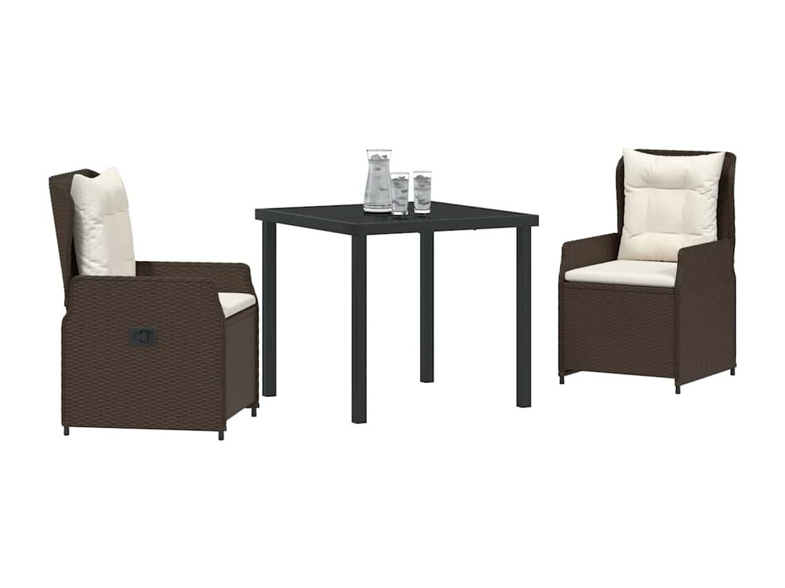 Juego de comedor de jardín de 3 piezas con cojines marrones en ratán sintético