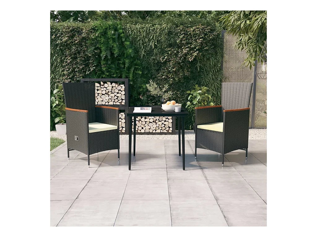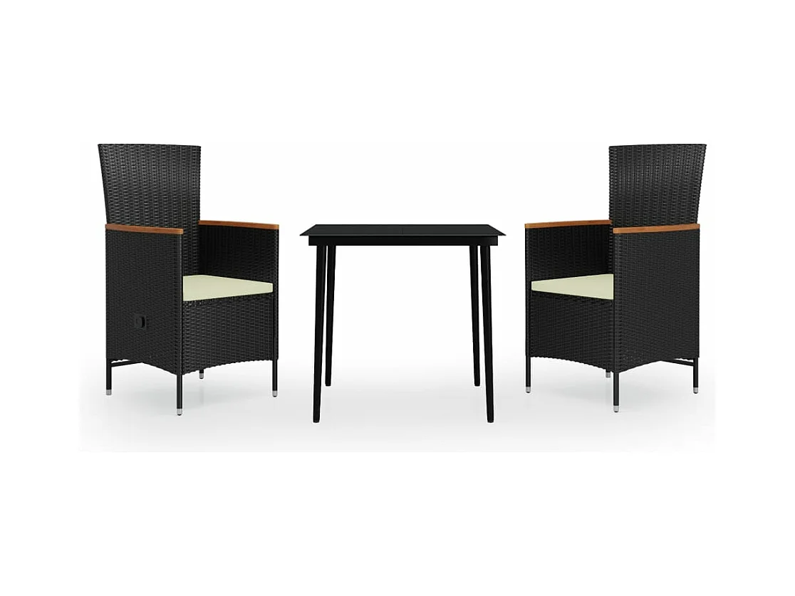 Juego de comedor de jardín de 3 piezas y cojines negro