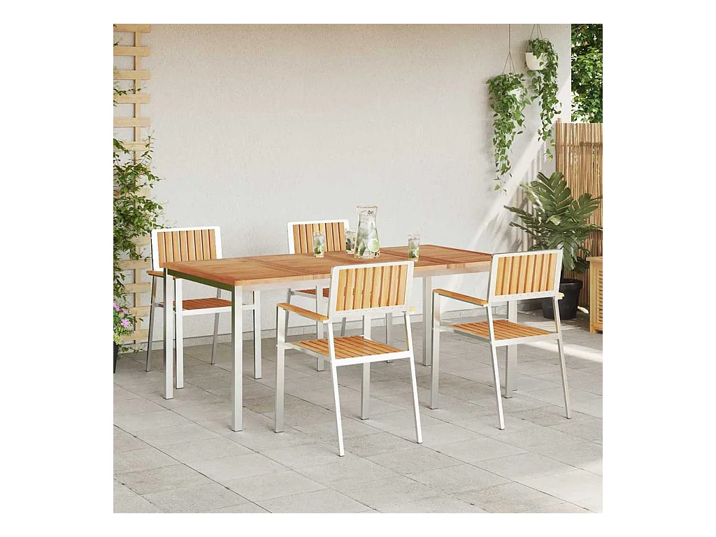 Mesa de comedor para exterior de madera maciza de acacia marrón