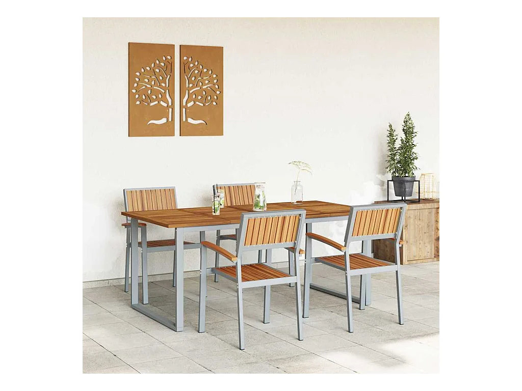 Mesa de comedor para exterior de madera maciza de acacia marrón