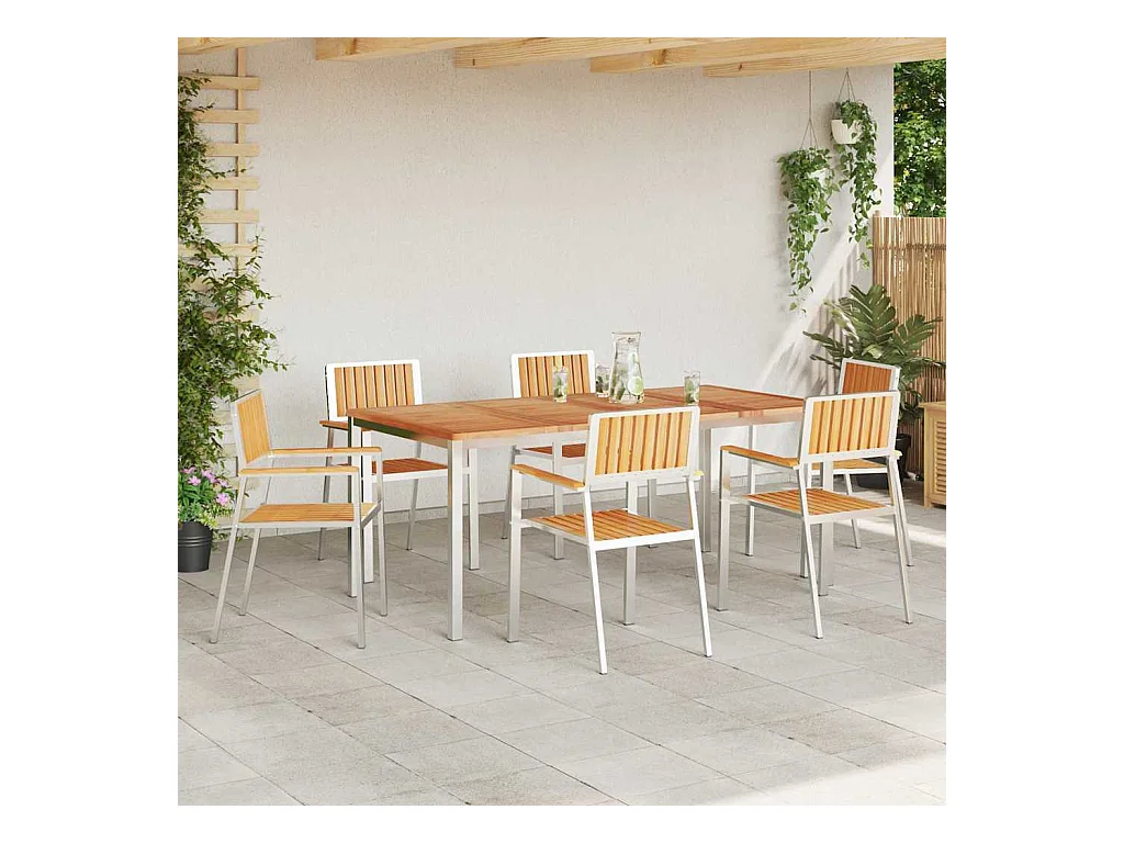 Mesa de comedor para exterior de madera maciza de acacia marrón