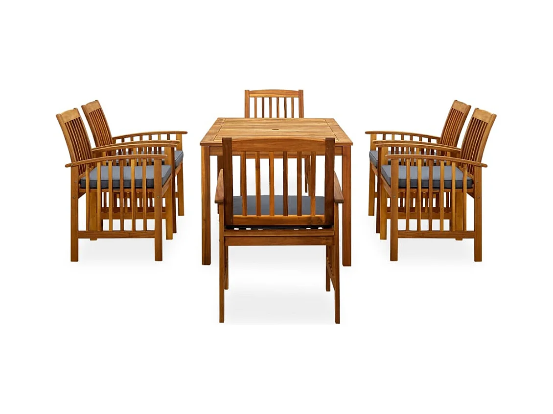 Juego de comedor de exterior de 7 piezas y cojines de acacia maciza 02_0014679
