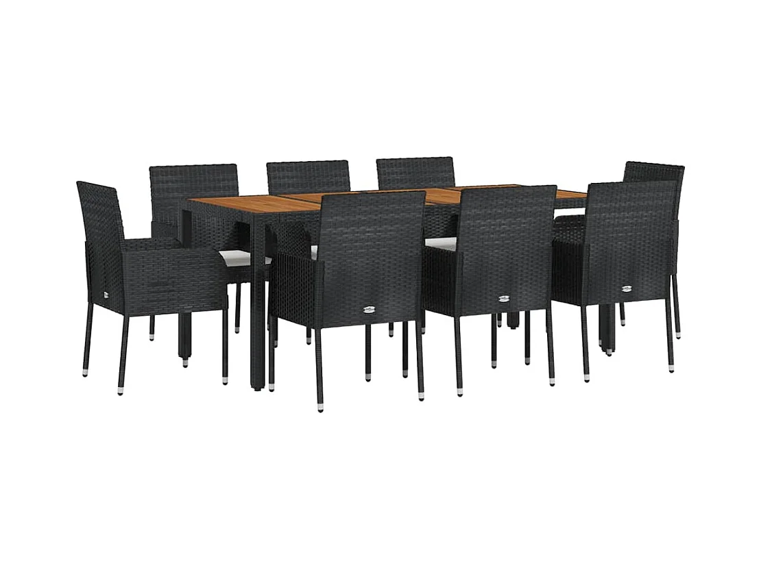 Conjunto de comedor de jardín de 9 piezas con cojines de mimbre negro 02_0014838