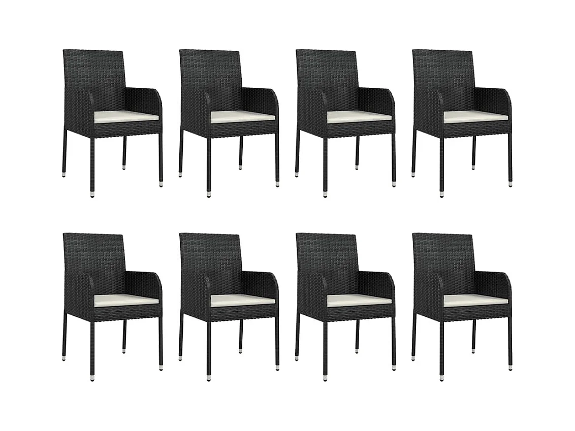 Conjunto de comedor de jardín de 9 piezas con cojines de mimbre de resina negra 02_0014829