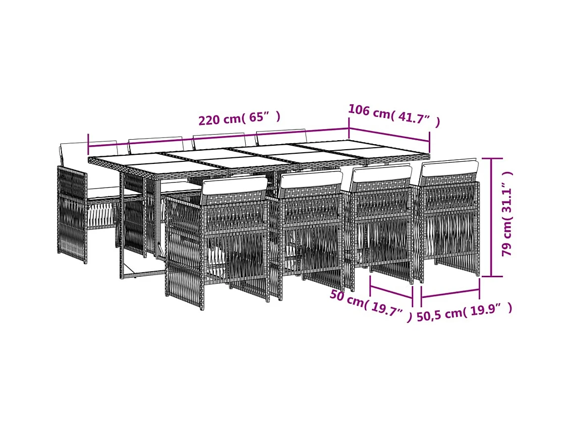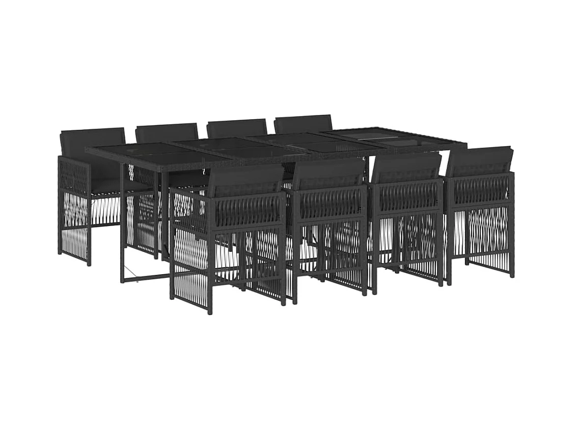 Juego de comedor de jardín de 13 piezas con cojines negros de mimbre de resina