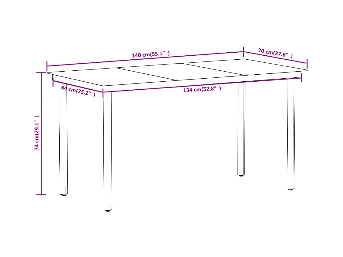 Conjunto de mesa y sillas para jardín rectangular de metal