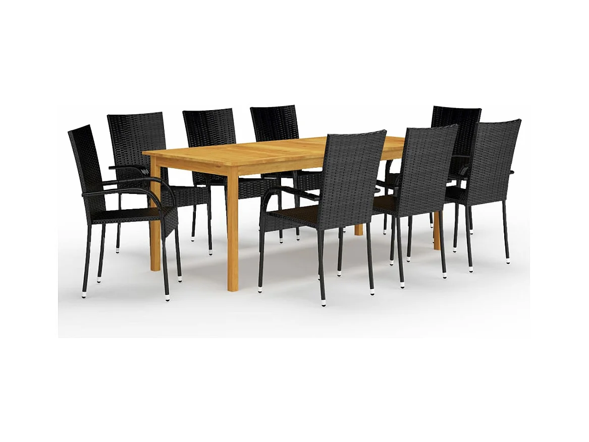 Juego de comedor de jardín muebles de exterior 9 piezas negro 02_0014121