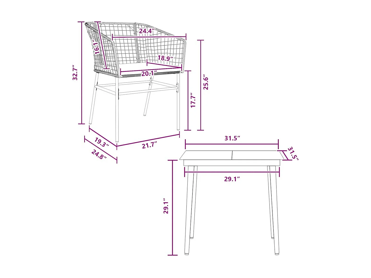 Juego de comedor jardín 3 piezas cojines ratán sintético marrón