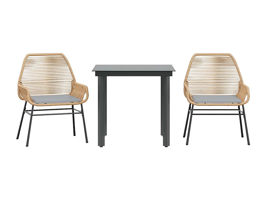 Juego de comedor jardín 3 piezas cojines ratán sintético marrón