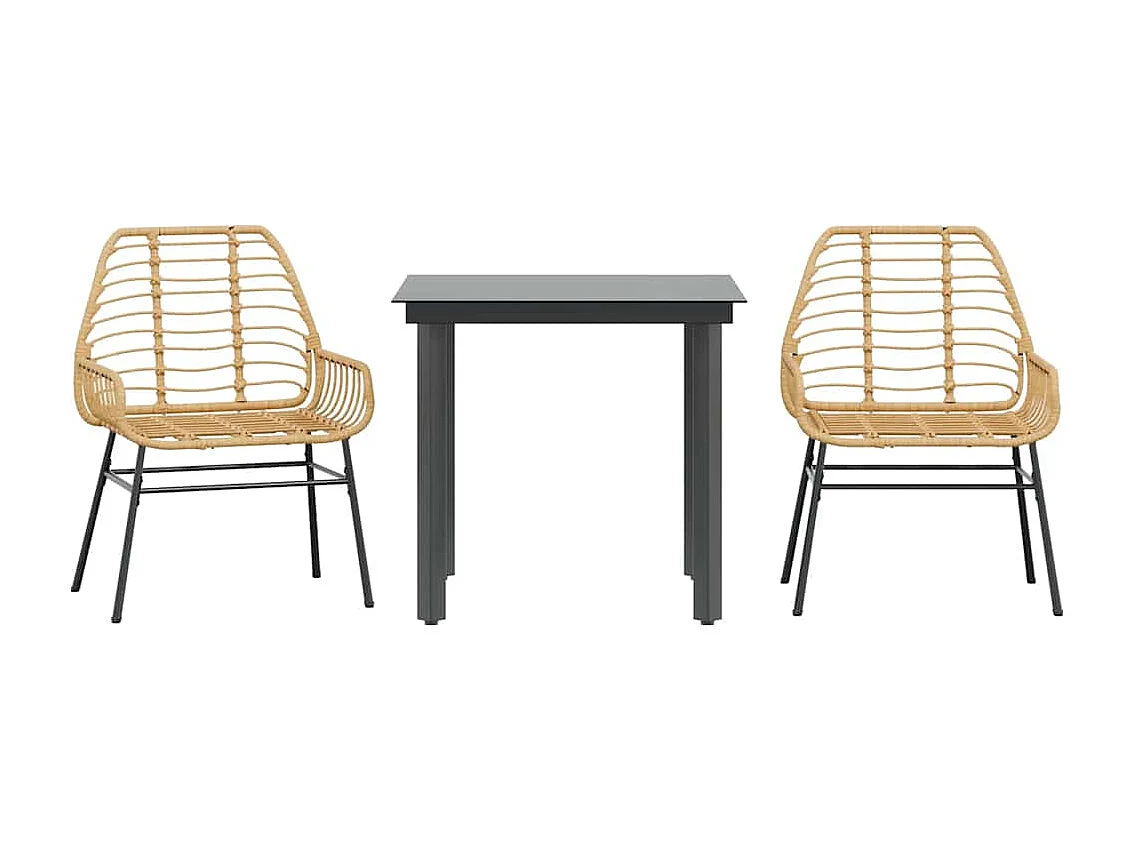 Juego de comedor jardín 3 piezas ratán sintético vidrio marrón