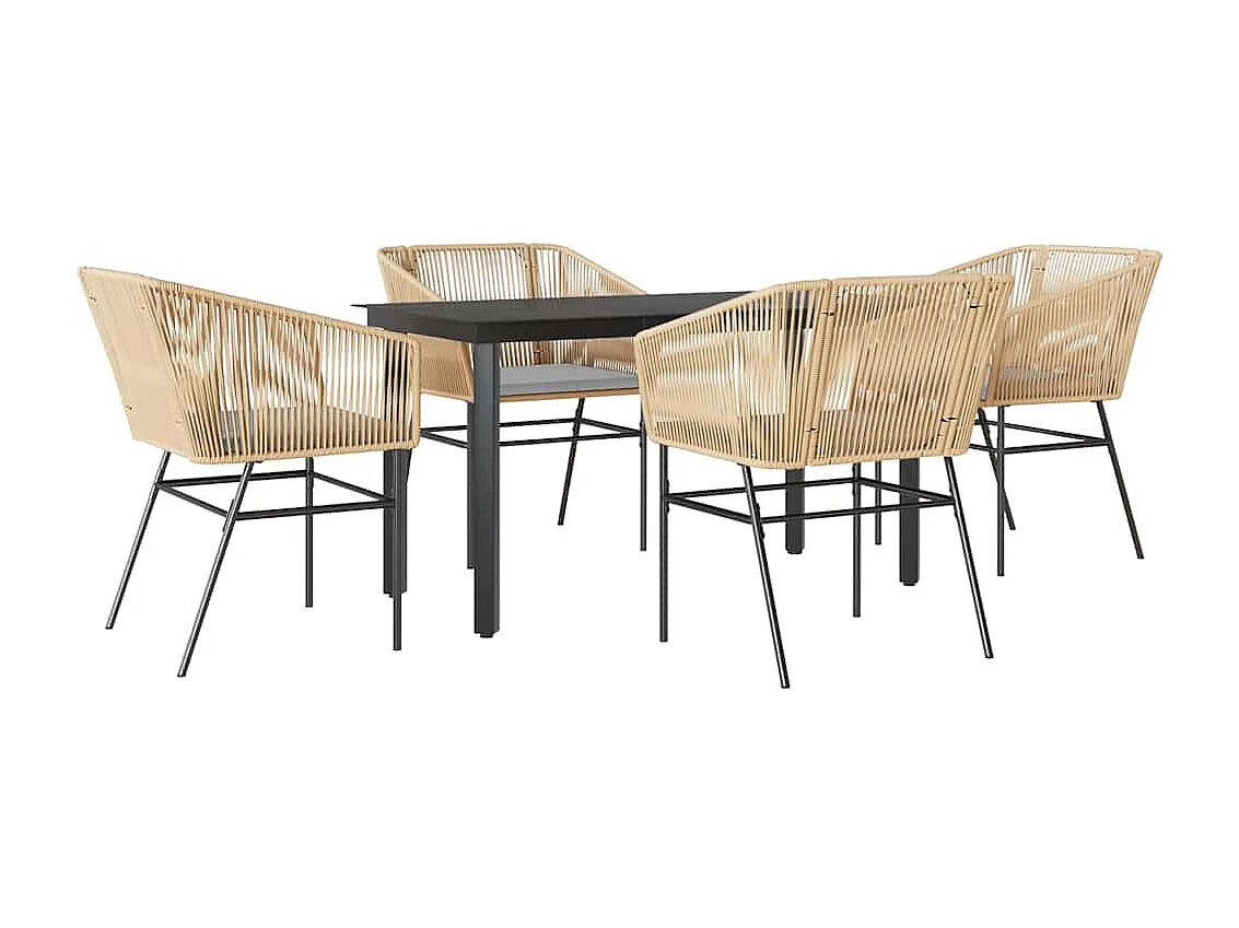 Juego de comedor jardín 5 piezas cojines ratán sintético marrón