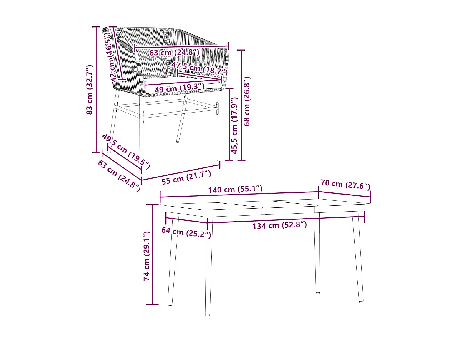 Juego de comedor jardín 5 piezas cojines ratán sintético negro