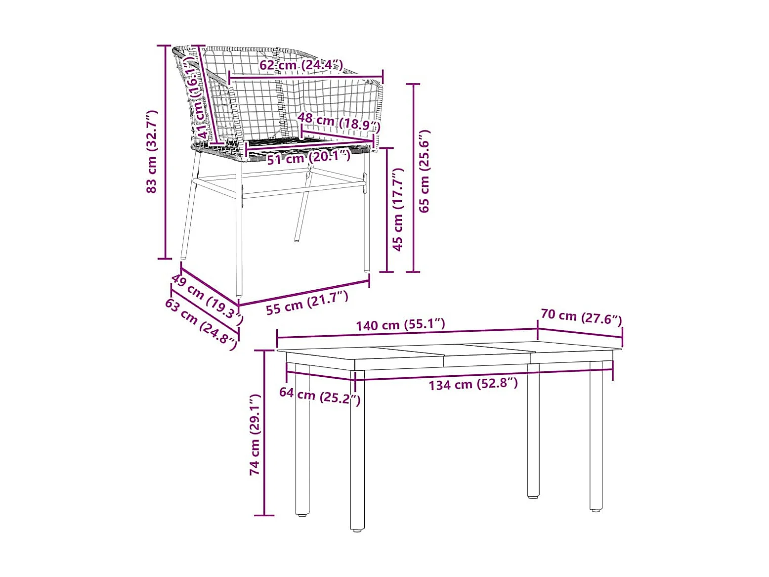 Juego de comedor jardín 5 piezas ratán sintético marrón