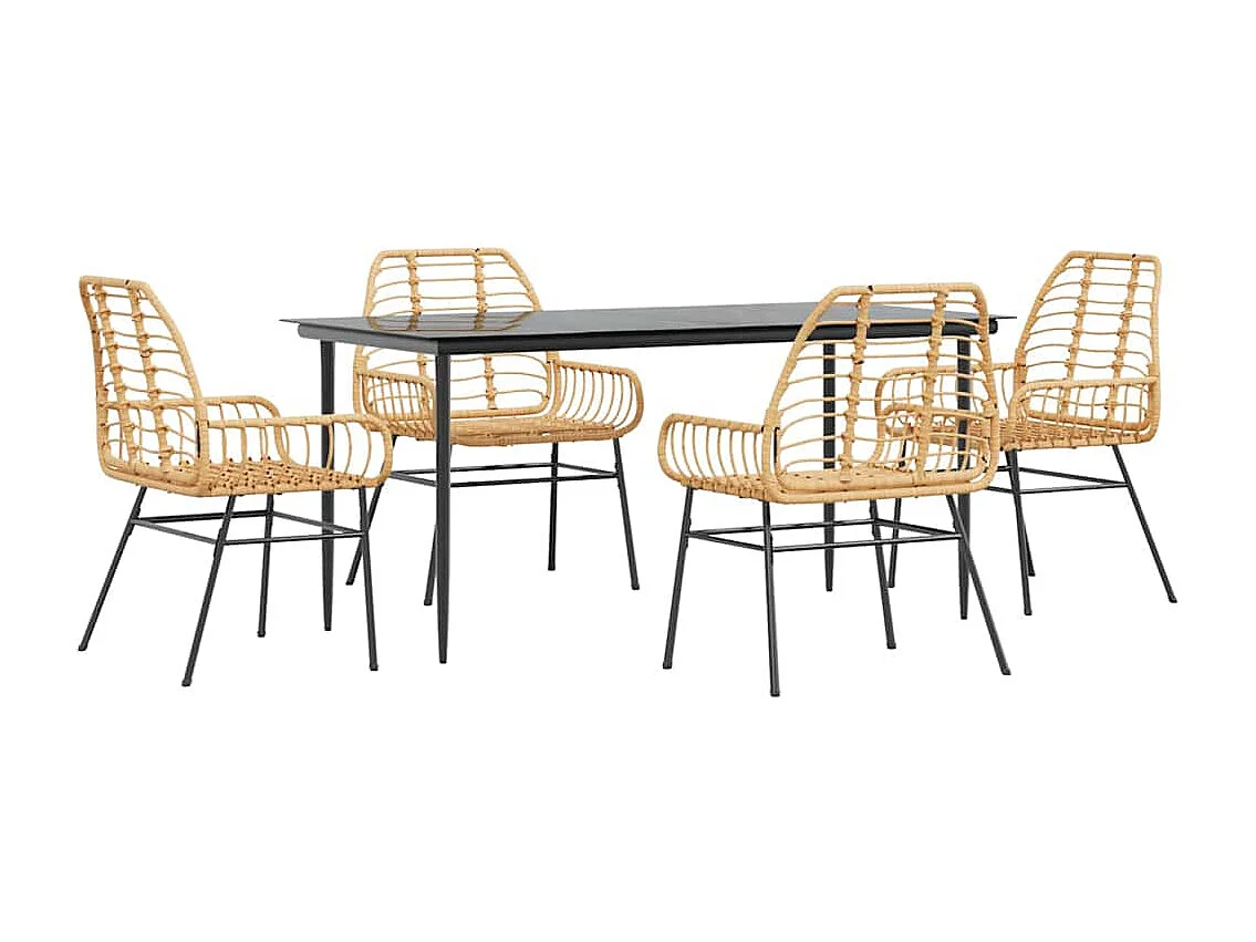 Juego de comedor jardín 5 piezas ratán sintético marrón