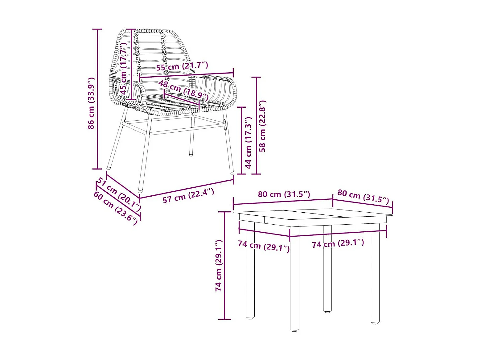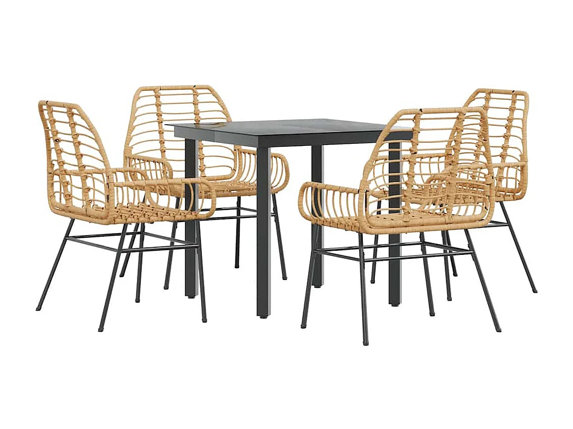 Juego de comedor jardín 5 piezas ratán sintético marrón