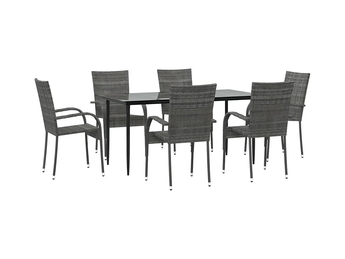 Juego de comedor de jardín muebles de exterior 7 piezas gris y negro 02_0013972