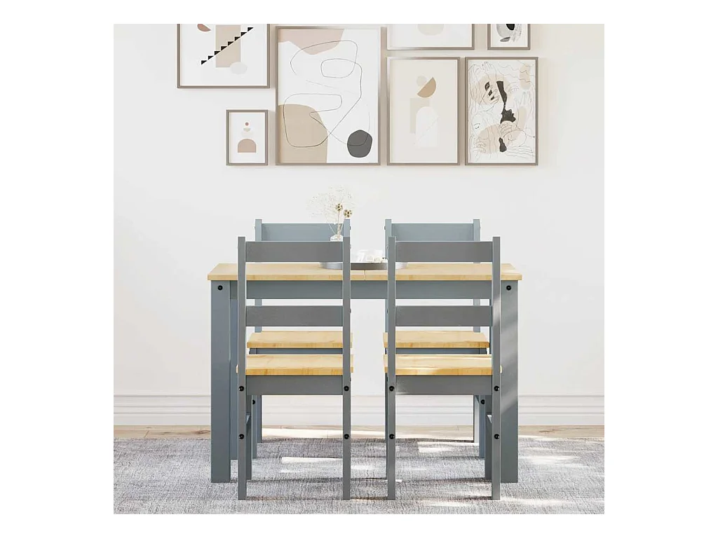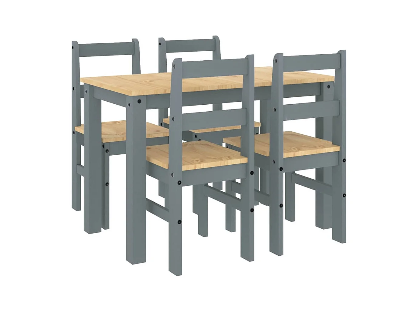 Juego de comedor Panamá de 5 piezas, gris, madera maciza de pino