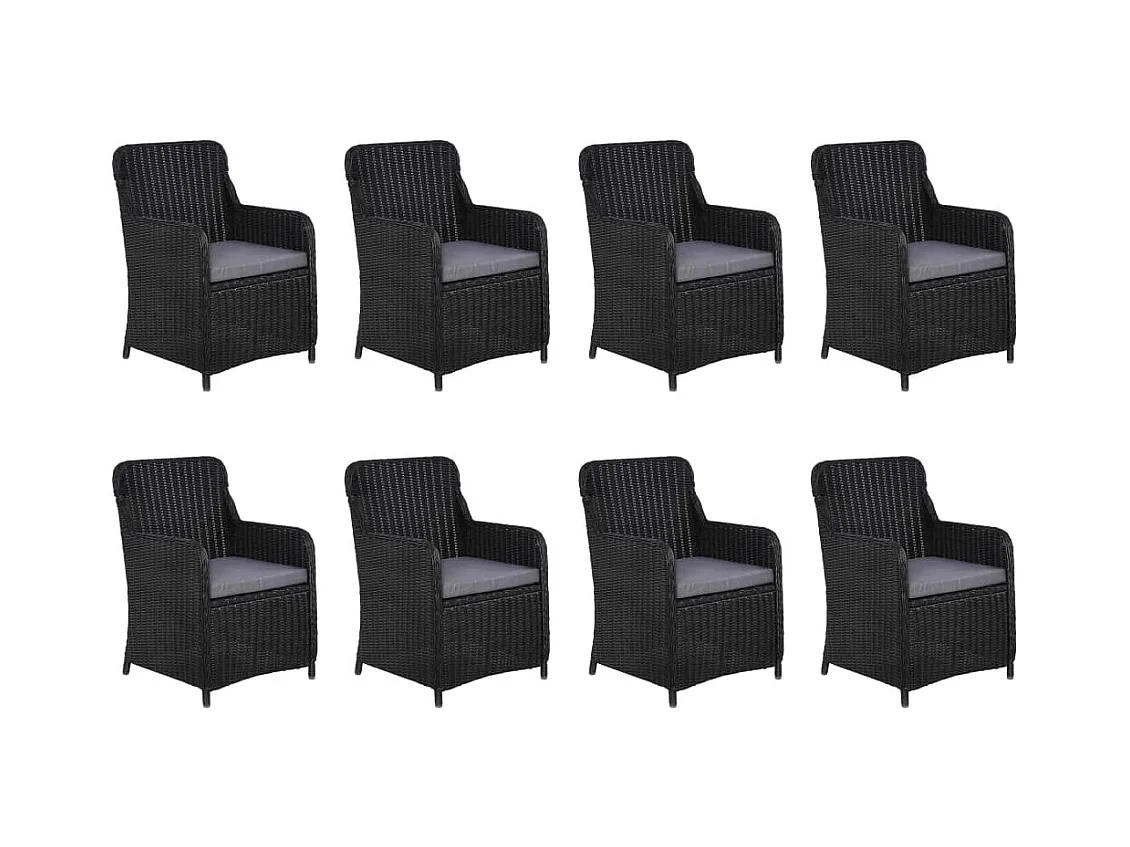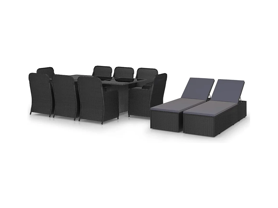 Set comedor de jardín 11 piezas con cojines ratán sintético negro