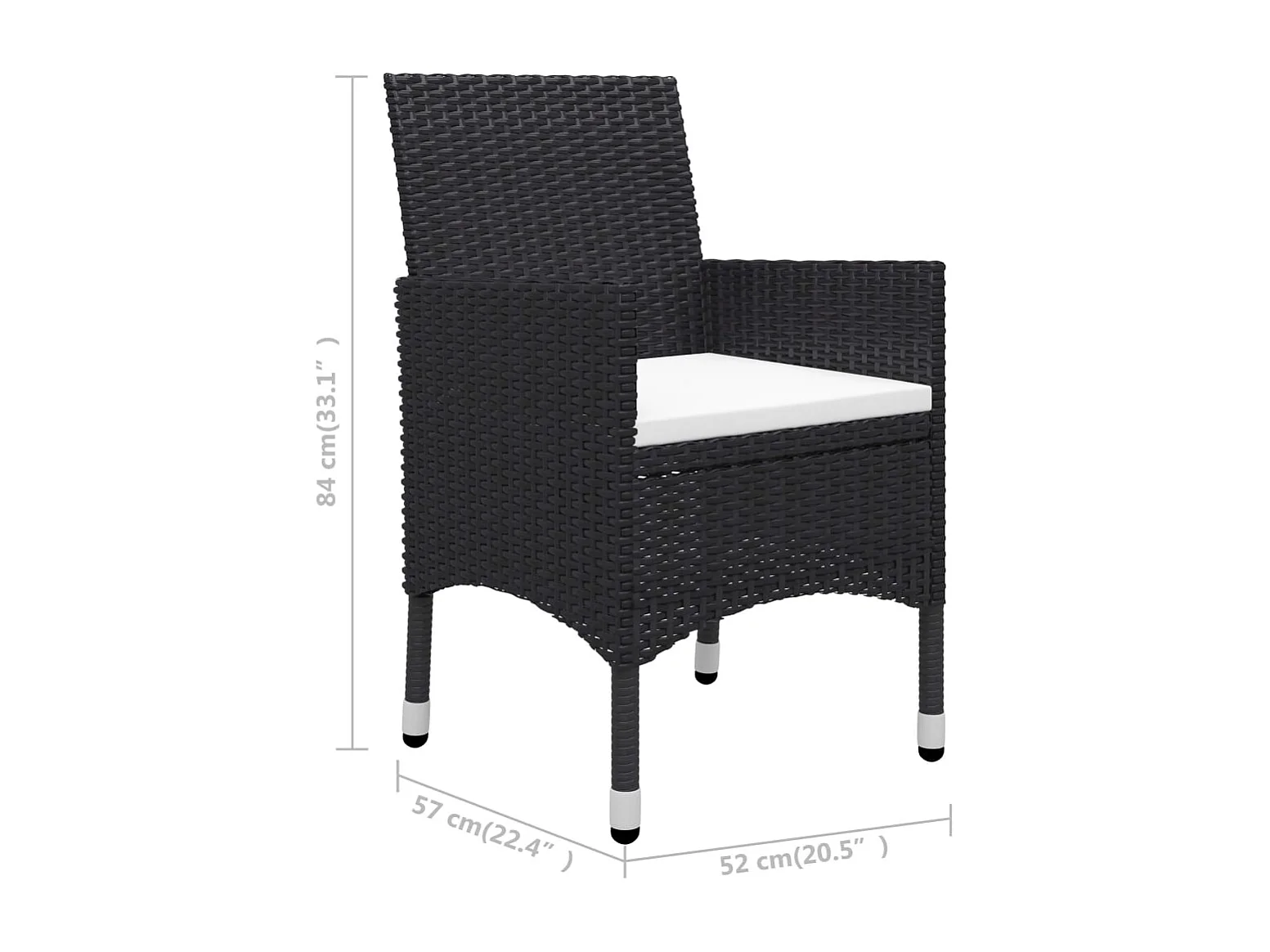 Juego de comedor para jardín 3 piezas negro