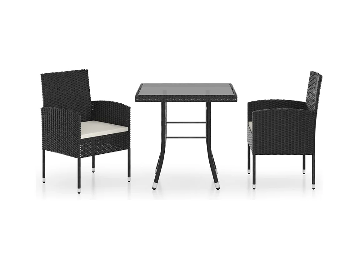 Juego de comedor para jardín 3 piezas ratán sintético negro