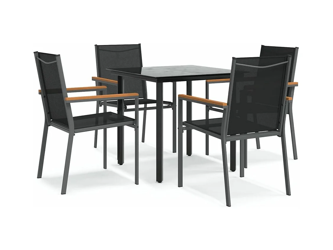Juego de comedor para jardín 5 piezas acero y textilene negro