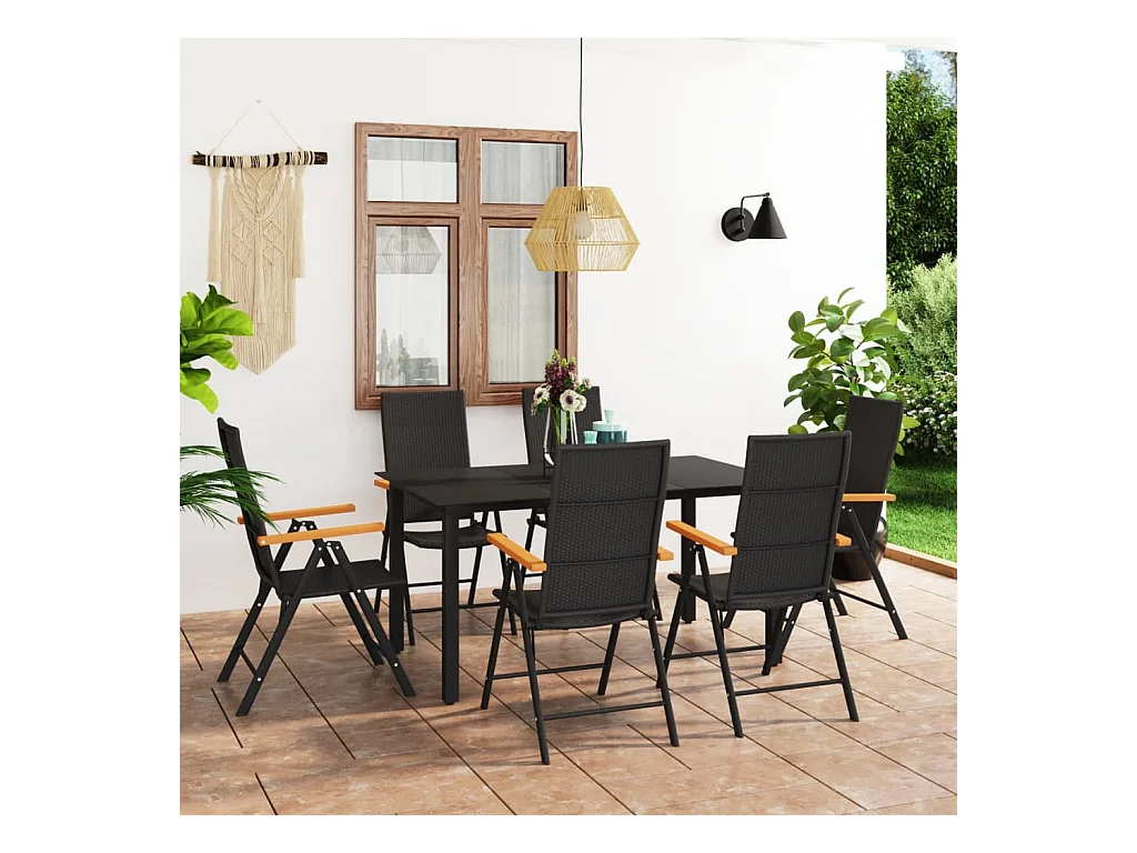 Juego de muebles de comedor de jardín 7 piezas ratán PE negro