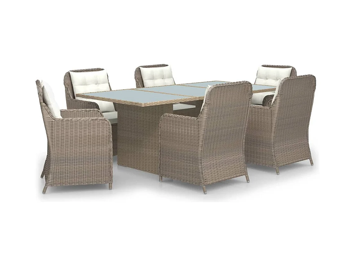 Juego de comedor para jardín 7 piezas ratán sintético marrón