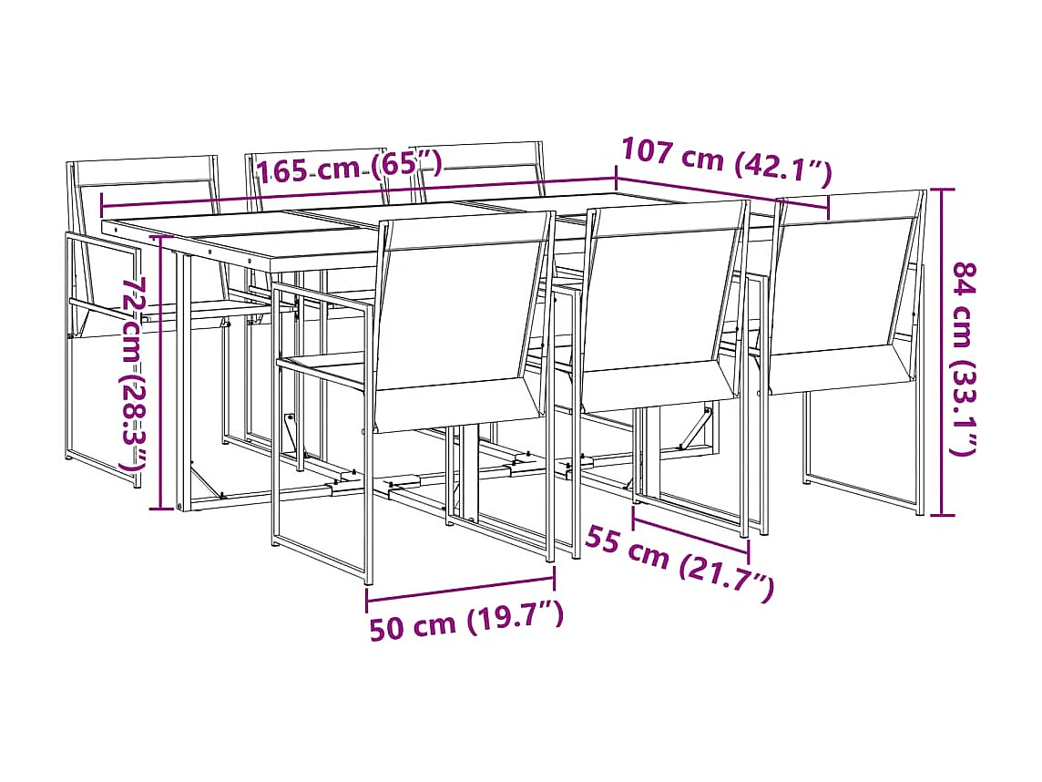 Conjunto de mesa y sillas para jardín rectangular de metal