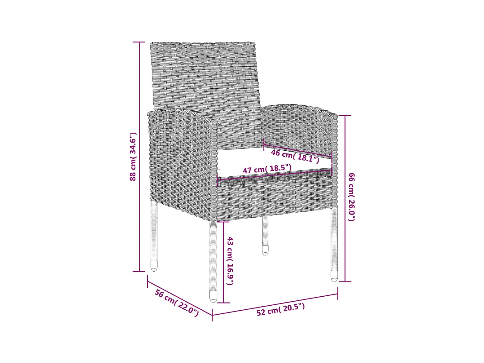 Juego de comedor de jardín 9 piezas con cojines textileno negro