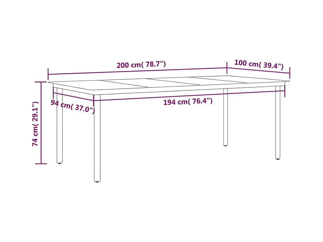 Conjunto de mesa y sillas para jardín rectangular de metal