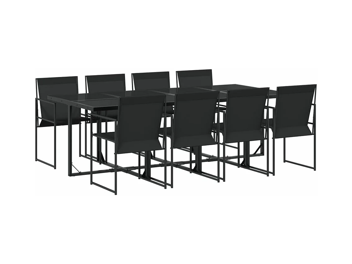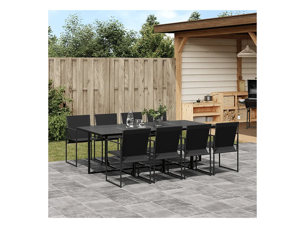 Juego de comedor de jardín 9 piezas con cojines textileno negro