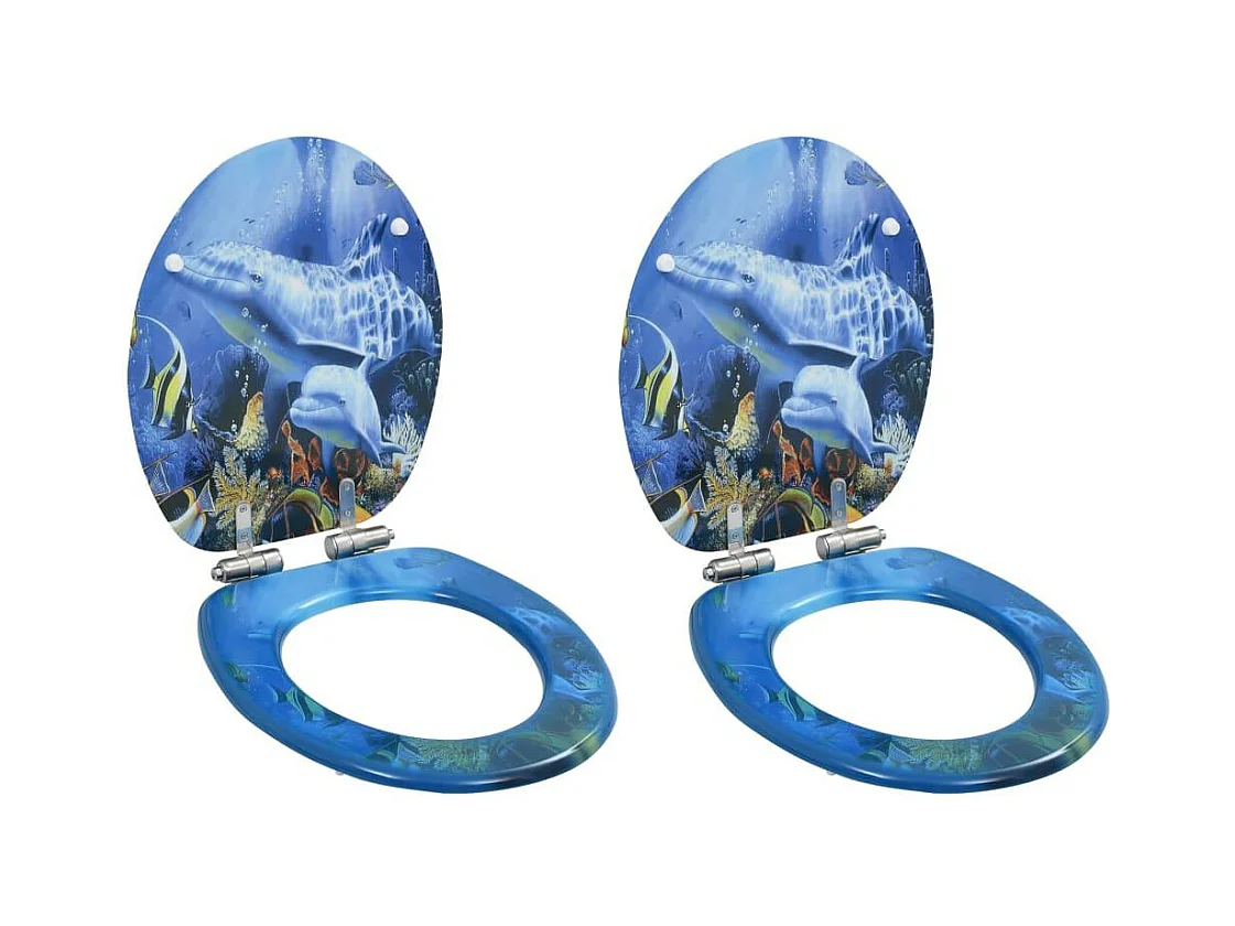 Juego de dos asientos de inodoro de MDF y tapa con cierre suave delfín 02_0002966