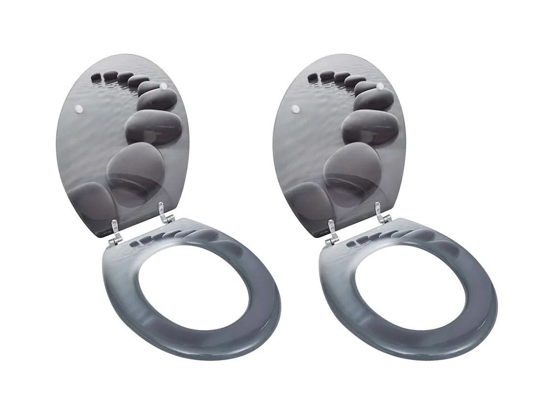 Juego de dos asientos de tapa de WC con revestimiento de MDF tipo guijarro 02_0002954