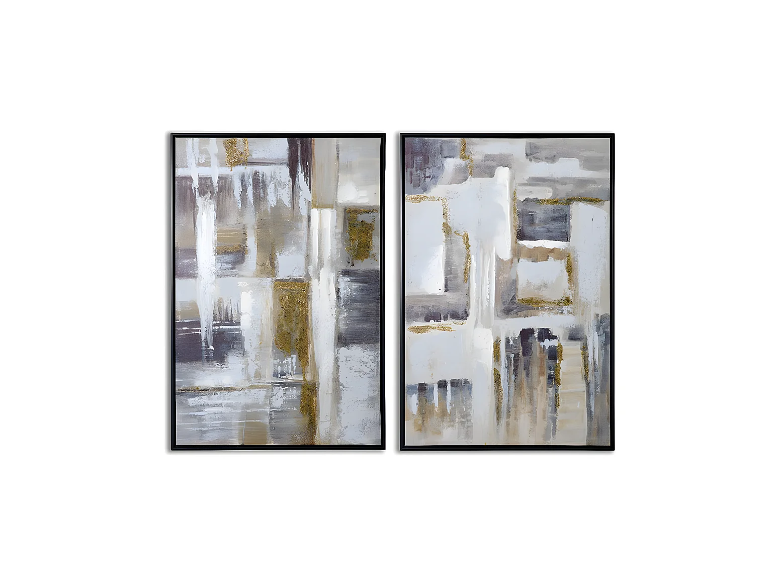 Juego de dos cuadros63*93*3.5 abstractos con marco negro pinceladas doradas new york