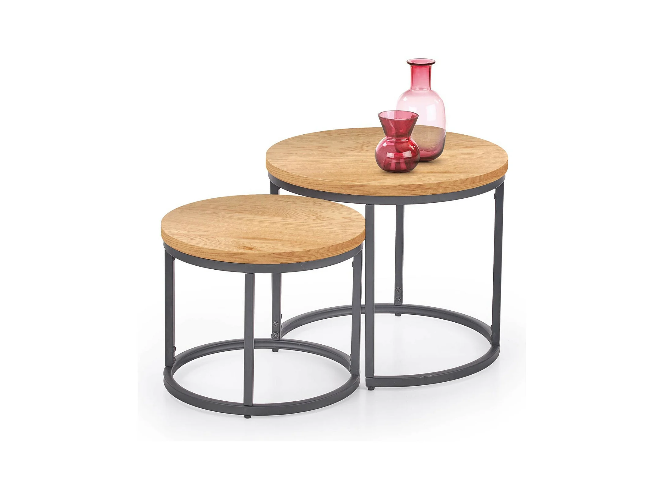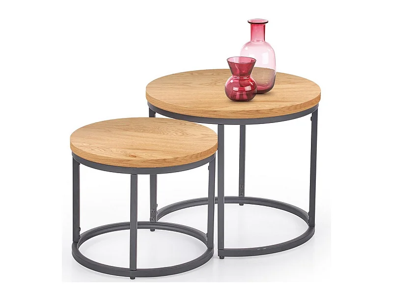 Juego de dos mesas nido redondas de roble dorado con patas de metal negro SIRONA