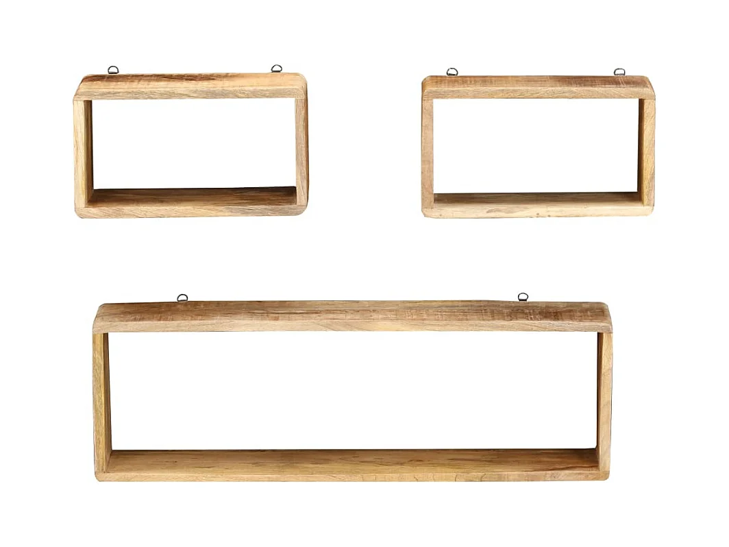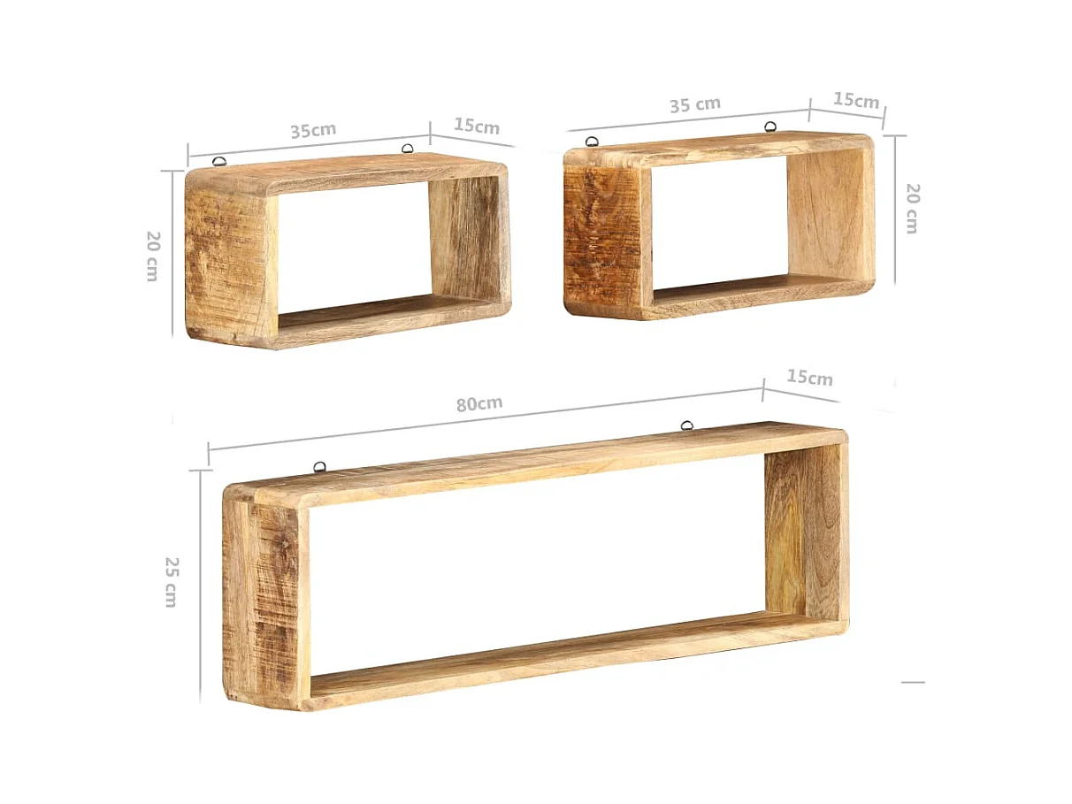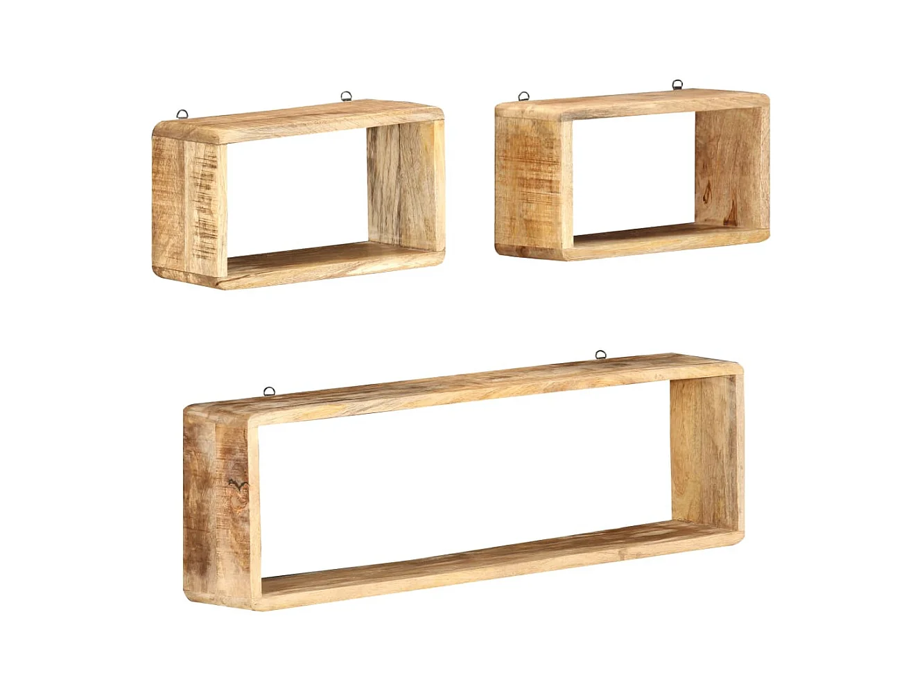 Juego de estantes cubo de pared 3 piezas madera maciza de mango