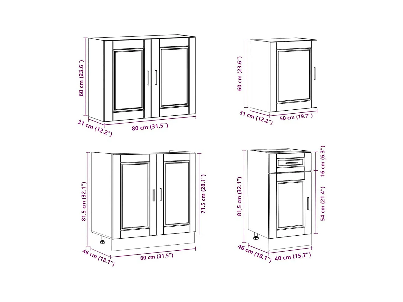 Juego de gabinetes de cocina Kalmar de 7 piezas de madera de ingeniería