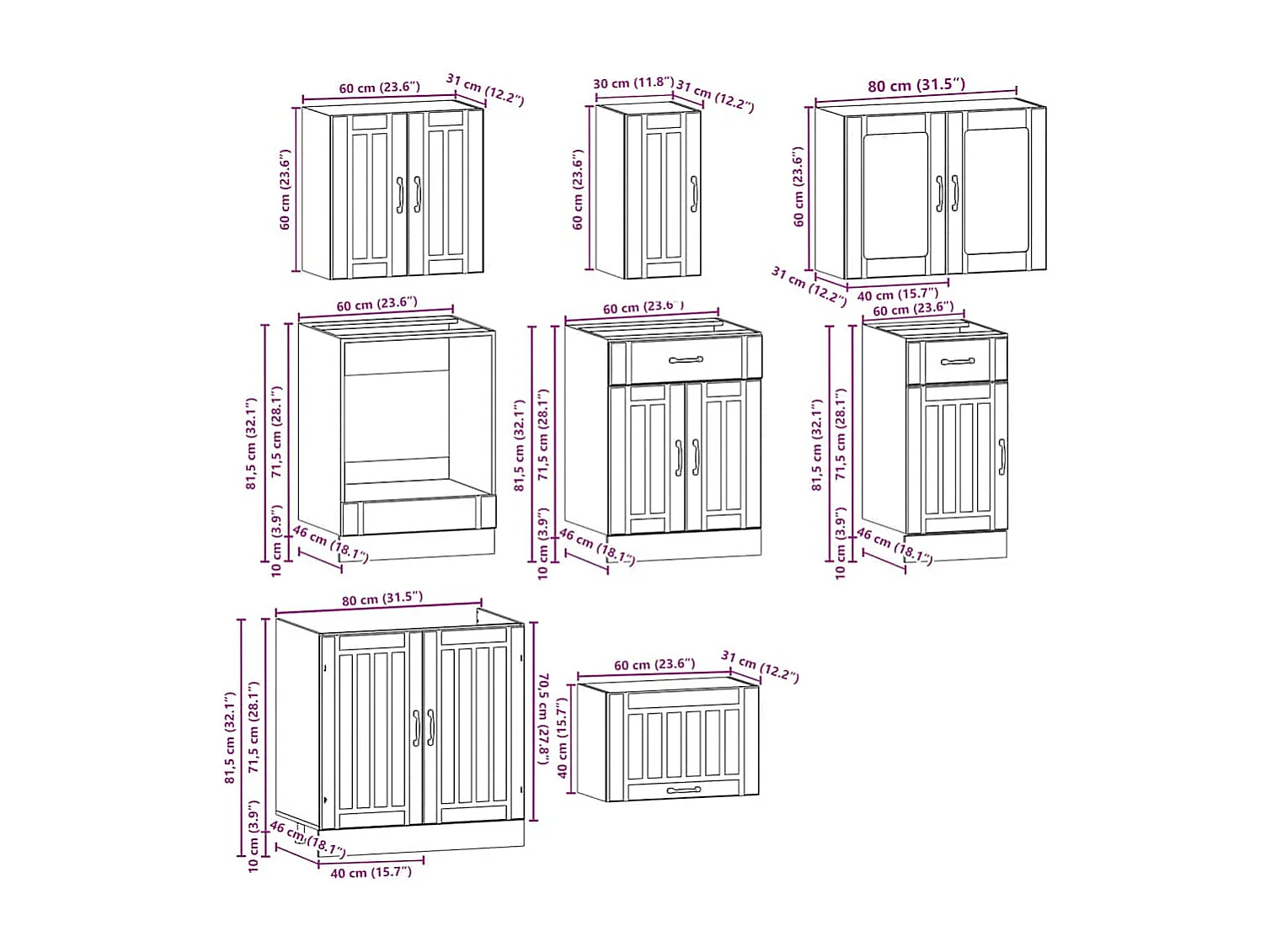 Juego de gabinetes de cocina Kalmar de 8 piezas de madera de ingeniería