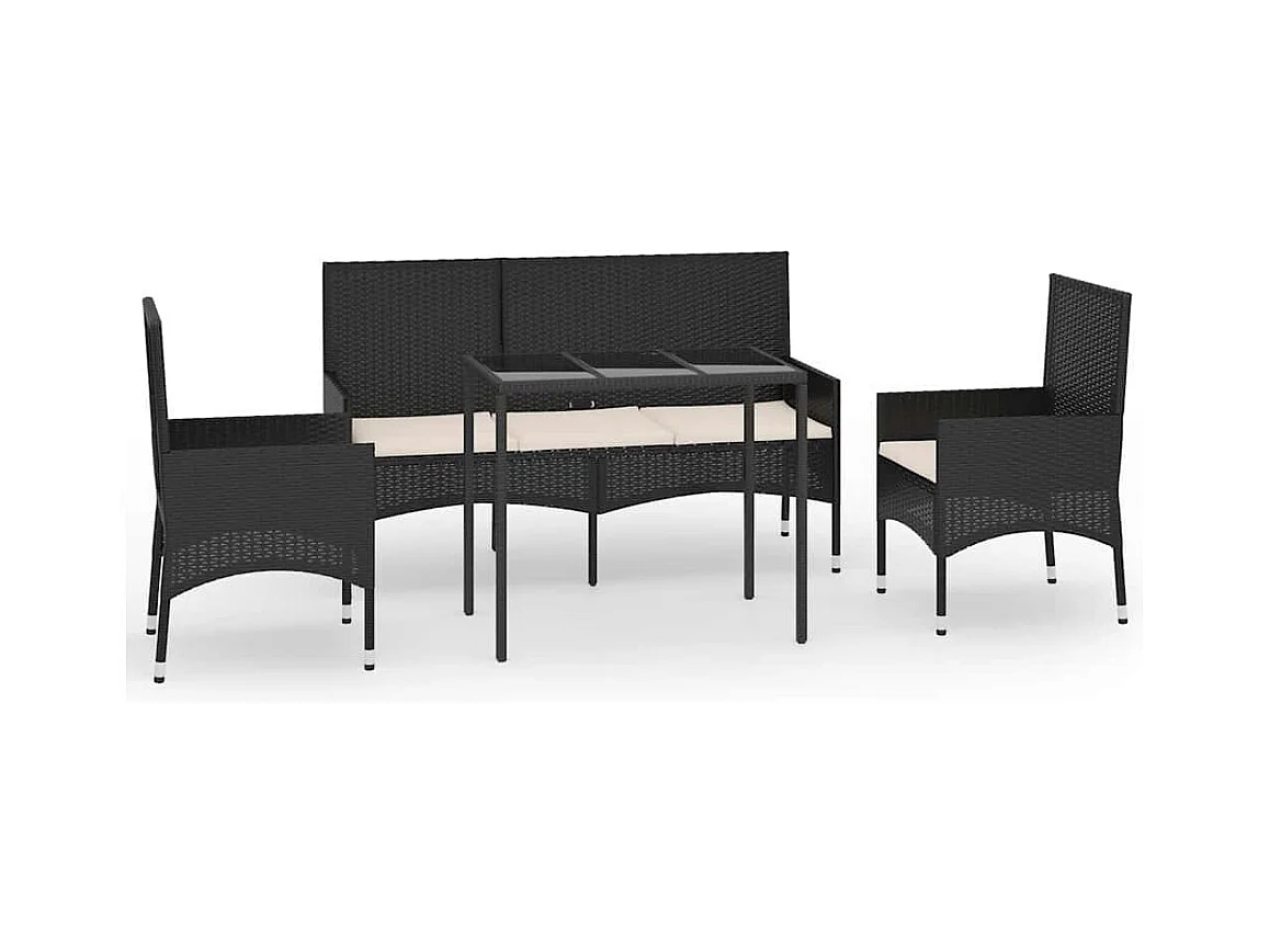 Set de muebles de jardín 4 pzas y cojines ratán sintético negro